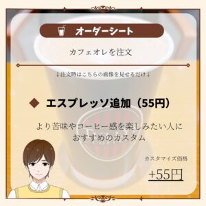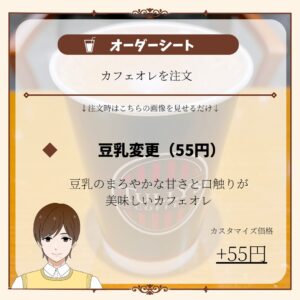 紹介するカスタマイズは「レジで画像を見せるだけ」の方法になっているので、画面を提示するか読み上げるだけで注文できます!