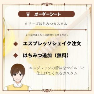 ・タリーズで頼めるはちみつトッピングの値段や対象商品