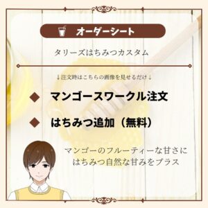 マンゴーのフルーティーな甘さと、はちみつの自然な甘さが楽しめるカスタマイズ!