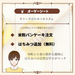 タリーズではドリンクやフードにはちみつを追加することができます。