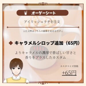 キャラメルの香ばしさと甘さをプラスしたキャラメル好きにぴったりのカスタマイズ!