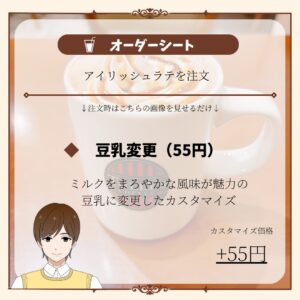 ・ミルクをまろやかな風味が魅力の豆乳に変更したカスタマイズ