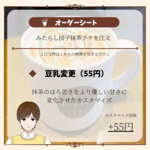 マイルドな甘さの豆乳に変更したカスタマイズ