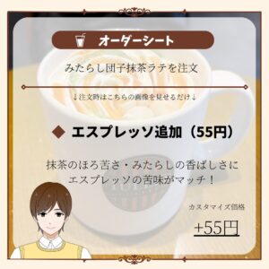 抹茶とみたらしの風味にエスプレッソが意外にもマッチしたカスタマイズ