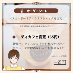 ・新作ティラミスシェイクを飲みたいけど、カフェインが飲めない人でも頼めるカスタム