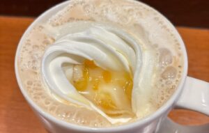 ホワイトチョコの甘さと、ホイップがあるので全体的にクリーミーでコクのある甘さが感じられる1杯です!